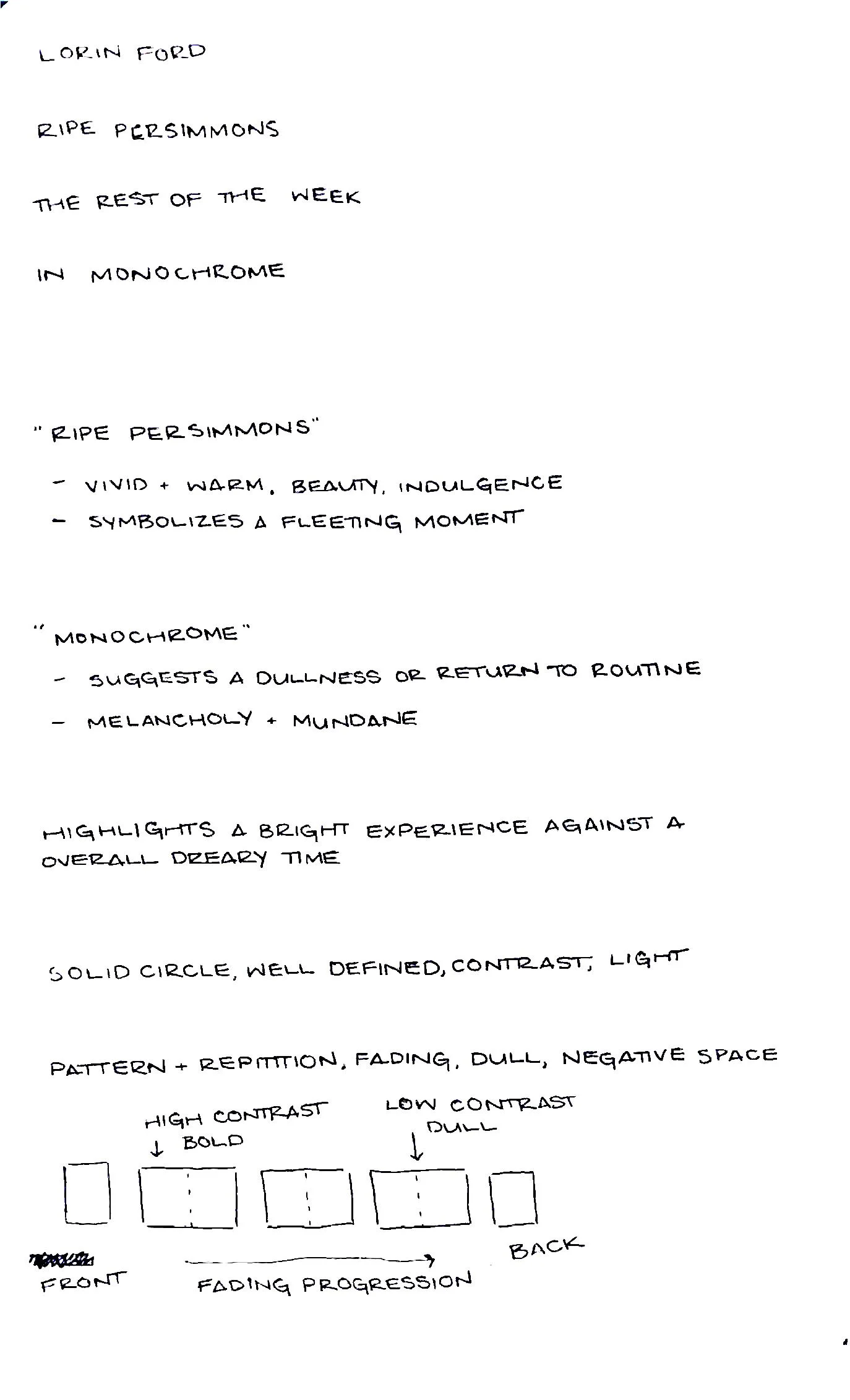 As part of the research process, I closely read and analyzed ripe persimmons by Lorin Ford, considering its imagery, rhythm, and emotional tone. This provided a foundation to translate the poem’s atmosphere into visual form